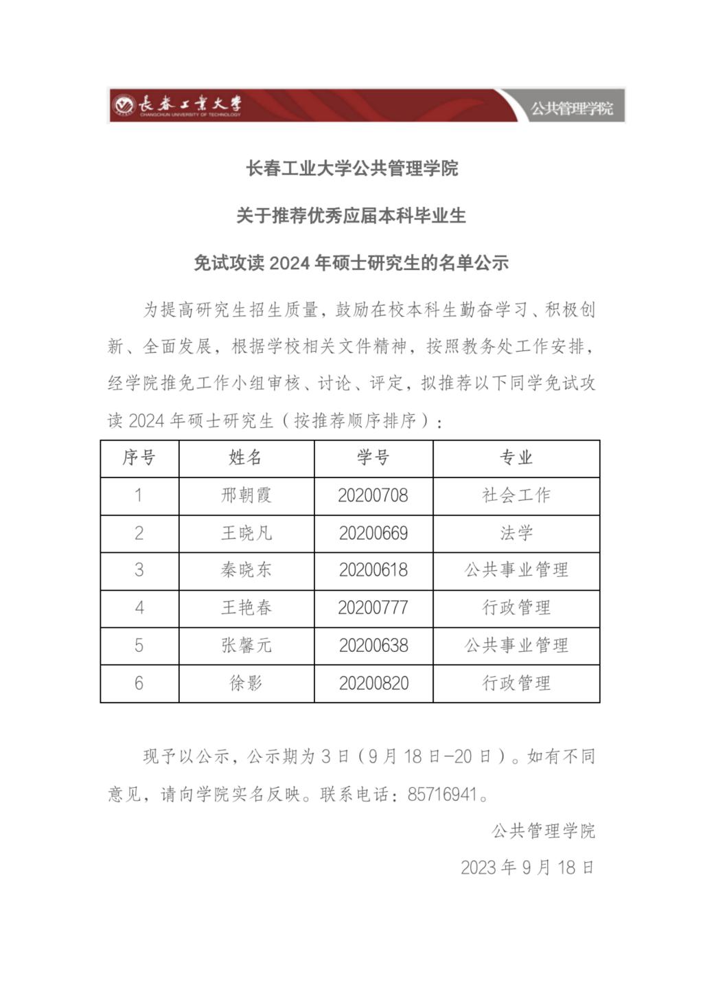 EMC易倍关于推荐优秀应届本科毕业生 免试攻读2024年硕士研究生的名单公示