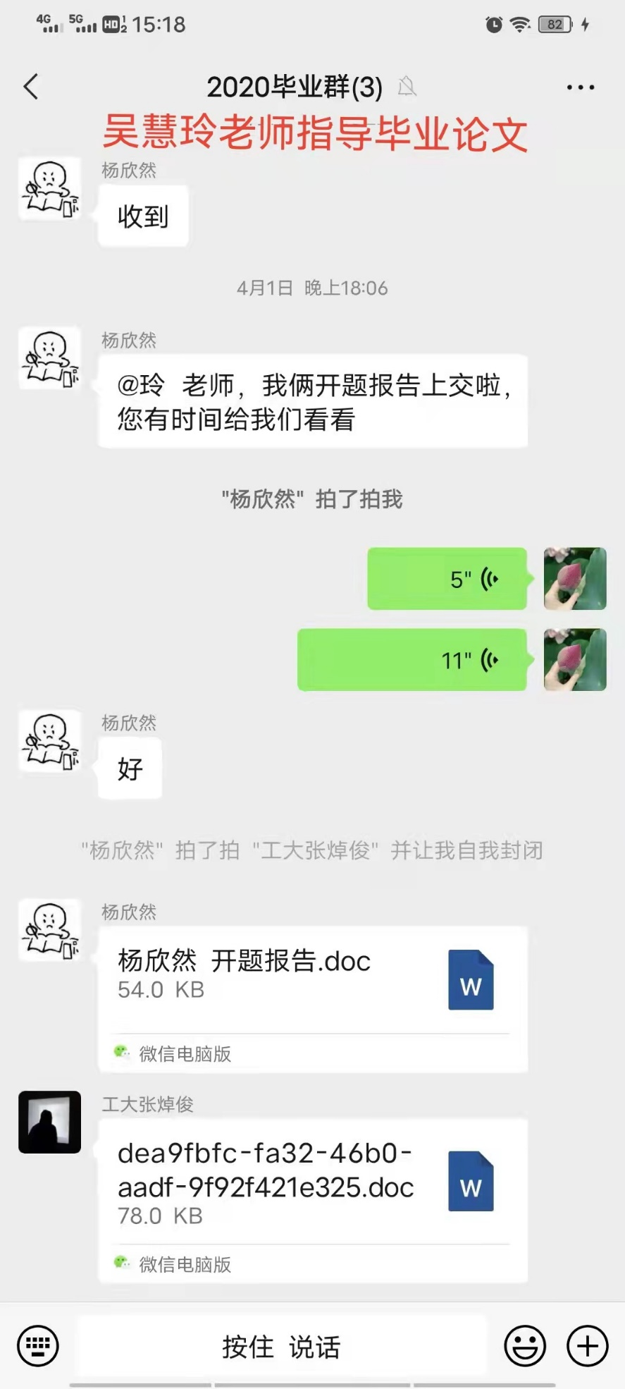 毕丹老师给“横班纵组”同学布置了查阅和梳理有关疫情期间社会工作服务的相关文献的作业,并通过腾讯会议召开组会,请每位同学分享阅读文献的收获和体会。毕老师还邀请了已经毕业的员工参会,这些员工一直工作在社区抗疫一线,有社工也有志愿者,他们给学弟学妹们讲述了社区抗疫前线的情况,理清了在抗疫工作中社工和志愿者的区别,生动展现了当下社区社工和志愿者的实际工作状况。毕老师也为同学们分析了疫情当下人们会产生焦虑情绪的原因,并为员工如何消除不必要的焦虑情绪提供了心理辅导。