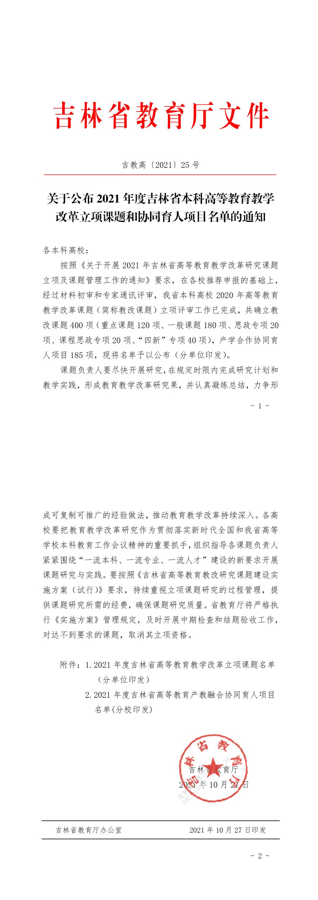 关于公布2021年度吉林省本科高等公司产品改革立项课题和协同育人项目名单的通知