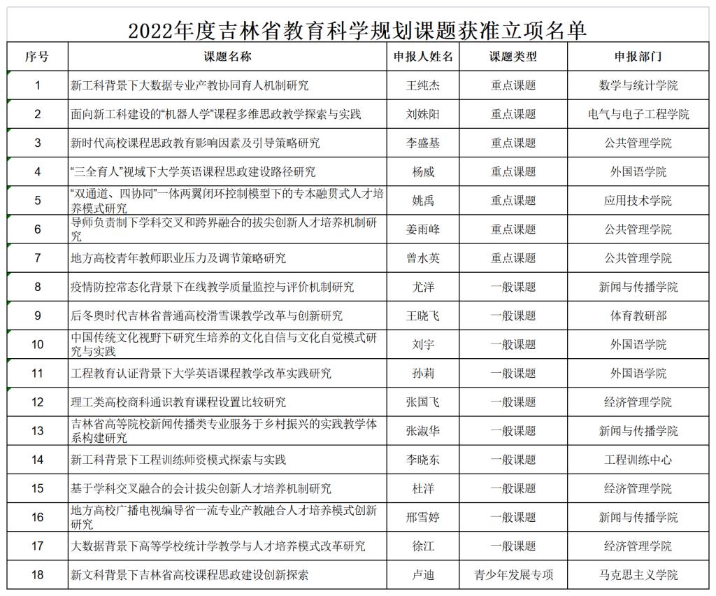 2022年度吉林省教育科学规划课题立项名单
