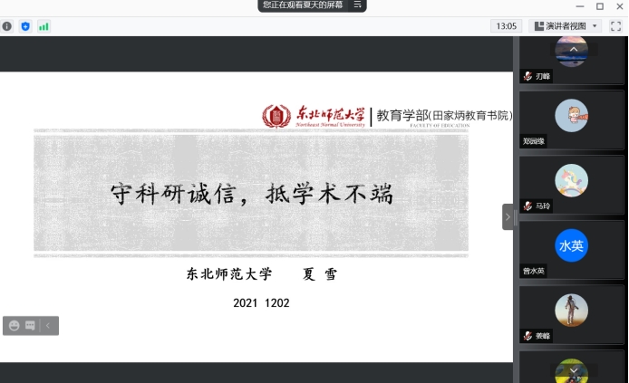 之后,开展“守科研诚信,抵学术不端”的学术报告,主讲人是东北师范大学教育学部教育管理公司博士生导师夏雪老师,EMC易倍全体教师和研究生参与了此次报告。夏雪老师以鲜活的案例、生动的语言,深入浅出的呈现了什么是诚信、什么是学术不端及其带来的严重后果,并提出如何能守住诚信,抵制学术不端。