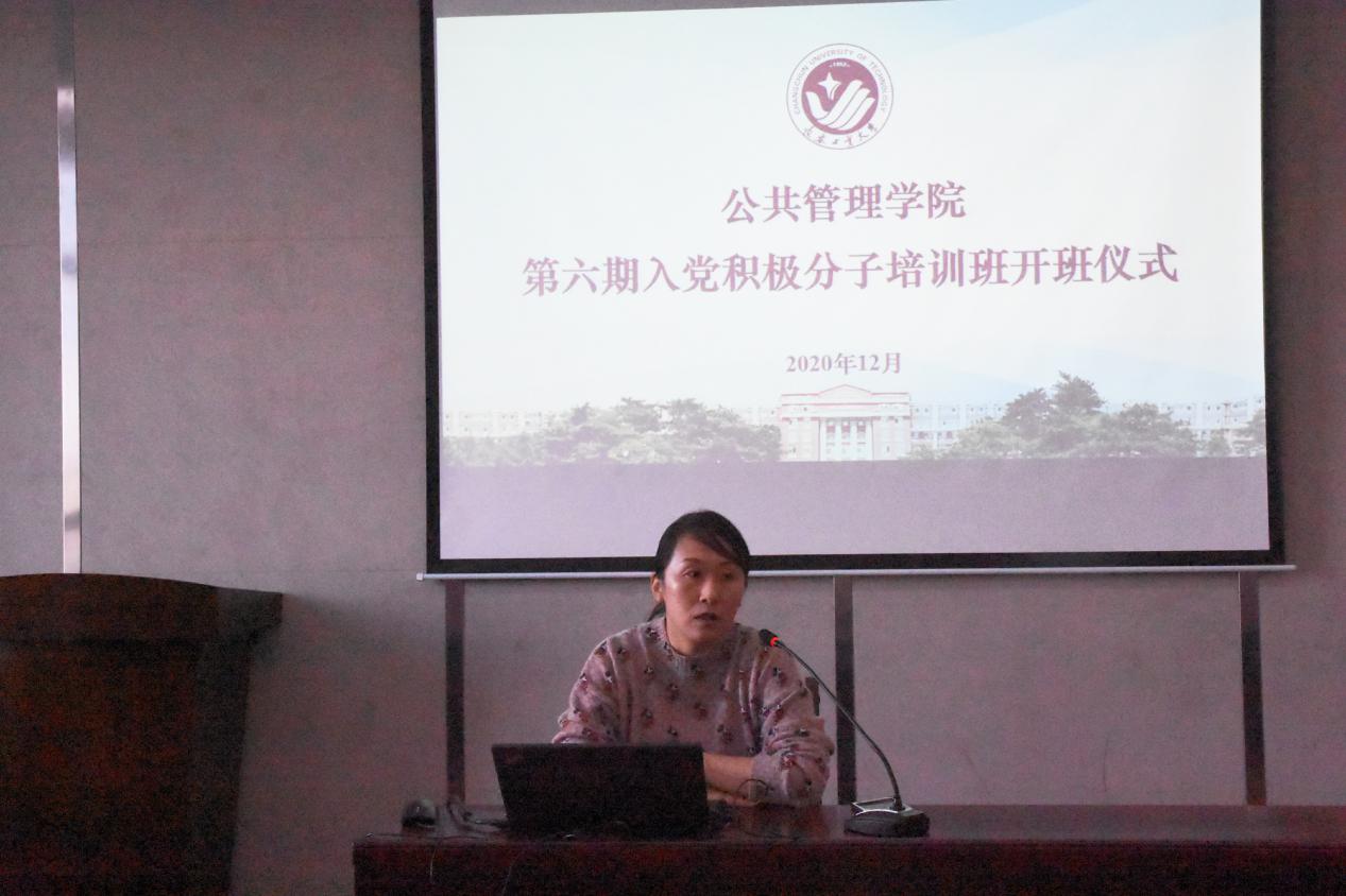 12月11日,第六期入党积极分子培训班开班仪式圆满完成,由员工党支部书记赵君老师担任主讲人,党委副书记王越老师、团委书记陈磊老师、18级辅导员别克老师出席本次活动。