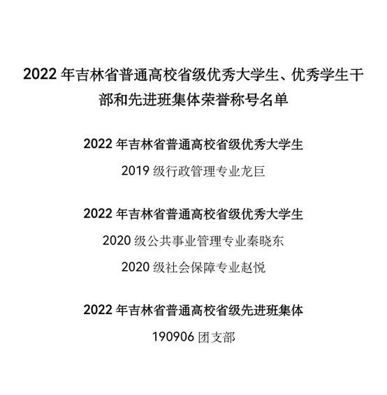 2022年,全省高校深入学习贯彻习近平新时代中国特色社会主义思想和党的二十大精神,全面贯彻党的教育方针,坚持立德树人根本任务,勇担为党育人、为国育才使命,培养德智体美劳全面发展的社会主义建设者和接班人,涌现出了一批优秀老员工、优秀员工干部和先进班集体。公司在此次评比活动中斩获佳绩,其中2019级行政管理专业龙巨荣获省级优秀员工干部称号,2020级公共事业管理专业秦晓东、社会保障专业赵悦获得优秀老员工称号,190906团支部获得省级先进班集体称号。