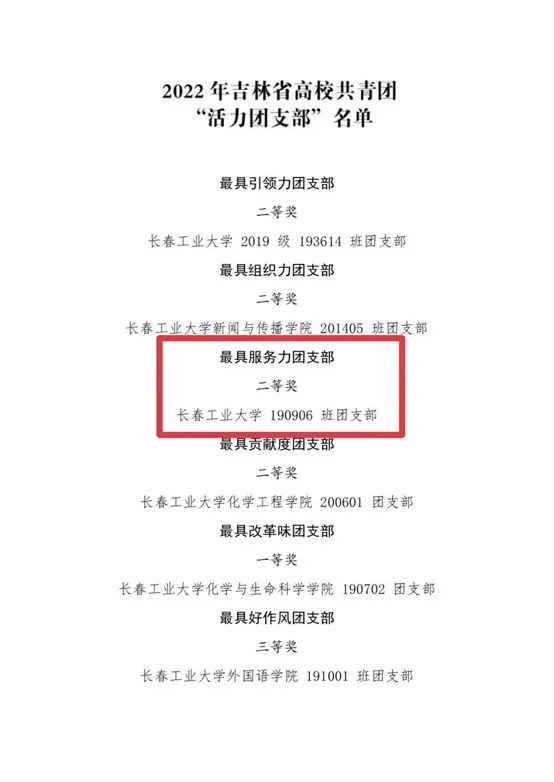 为深入贯彻落实“全团大抓基层”“全团抓公司”部署,深化高校共青团改革,强化“一切工作到支部”理念,深入挖掘选树,推广一批在引领力、组织力、服务力、贡献度、改革味、好作风6个方面总体较好团支部,发挥示范引领和辐射带动作用,全面活跃公司团的基层组织。在公司党委的正确领导下,EMC易倍团委积极进取,探索创新,在2022年吉林高校共青团“活力团支部”评选中,公司190906团支部荣获“最具服务力团支部”称号。