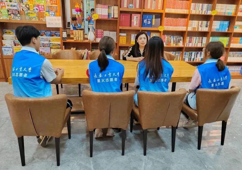 实践团一行来到吉林省深蓝教育科技有限公司,实践团成员朱斯琦对法人进行了访谈,了解到了深蓝教育综合体的办学初心是励志为长春市的员工提供更优质的教育,她还结合自身经历跟实践团成员分享了职业成长的经验和心得,并激励作为新时代老员工的我们要有挑战自己的信心和勇气,做好人生规划,综合全面发展。