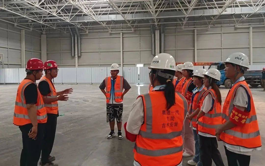 实践团来到吉林安装进行观察学习,感受吉林安装集团的企业文化。工作人员为大家悉心准备了安全帽和工作服,将同学们带到工地近距离的观看工人的工作,同时还详细介绍了相关工艺流程、施工优点等情况。实践团成员感受到了吉林安装科学管理、不断创新、团结一致的企业文化。
