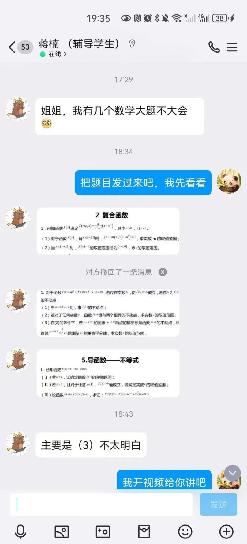 感谢公司提供的平台和机会,我很荣幸能与蒋楠同学成为学伴,参与“学伴+”志愿服务活动。我们通过线上视频、微信聊天等方法进行作业讲解。在讲解的过程当中也发现了许多的学习上的问题,我会与她本人沟通并及时解决。经过这一段时间的学习,蒋楠同学对知识的掌握更加扎实。