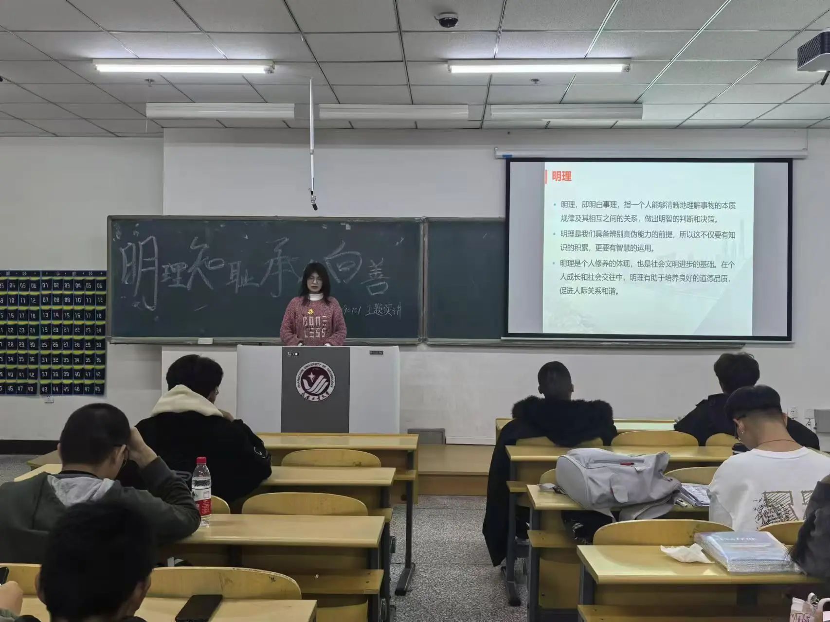 2024年10月31日,24090202班举办了“明礼修身,知礼明德”主题演讲活动。活动伊始,同学们进行了精彩的演讲。演讲者们依次登台,他们以饱满的热情和真挚的情感,围绕“明礼修身,知礼明德”这一主题,结合自身的经历和感悟,从不同的角度展开精彩演讲。随后,全体同学共同观看了感动中国十大人物事迹短片,每一位同学都沉浸其中,深受触动。