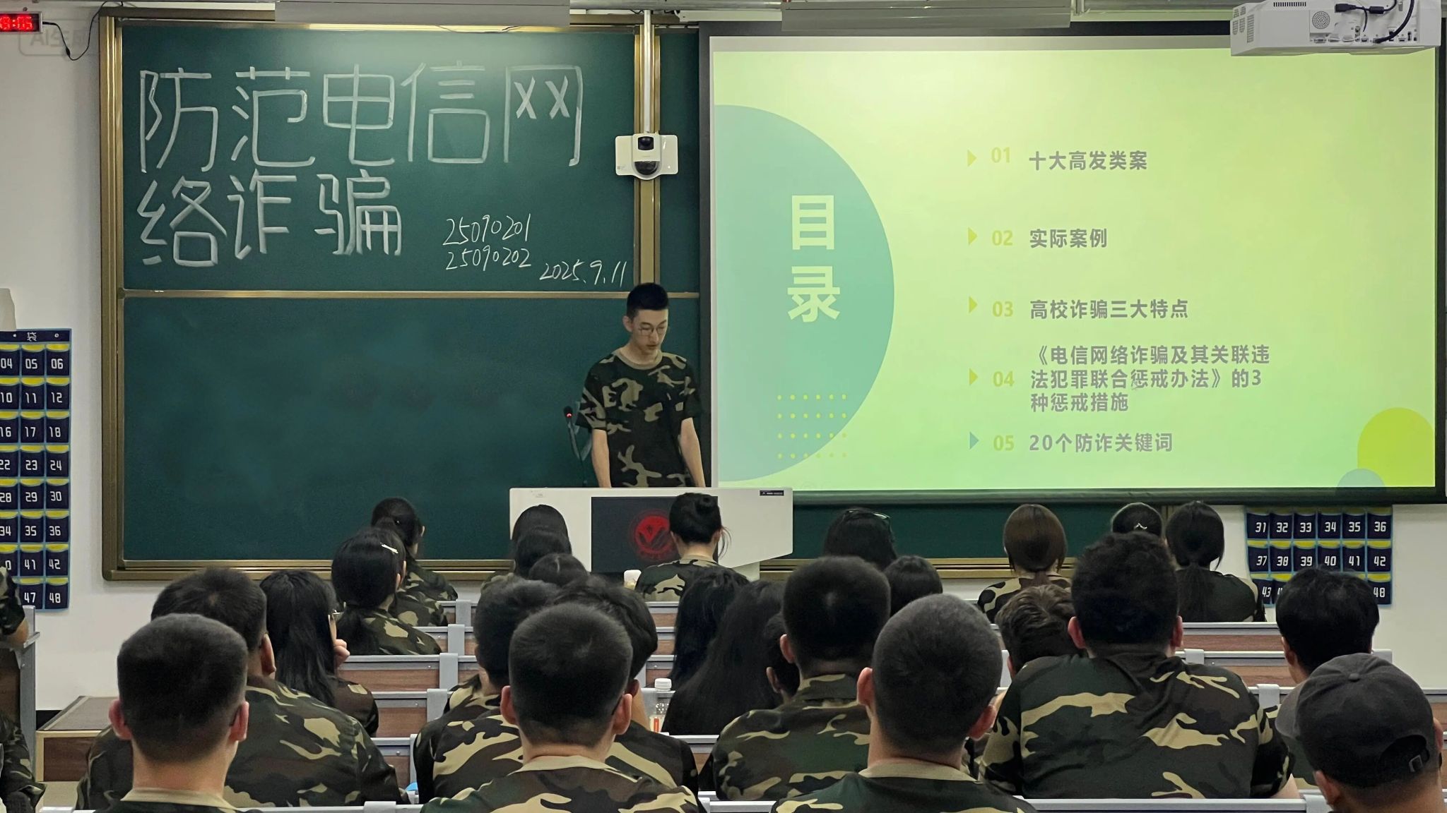 为切实增强员工安全防范意识,有效遏制电信网络诈骗案件发生,9月11日晚,EMC易倍于北湖东校区主楼201等教室组织2025级各班有序开展新生防范电信网络诈骗专题学习活动。