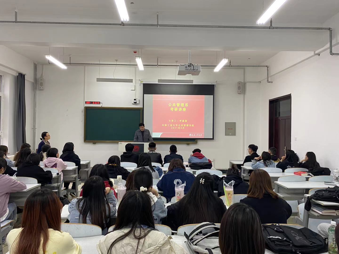 会后,公共管理系按照早谋划、早准备的方针,系主任李盛基老师、支部书记汪泳老师针对18级公共事业管理、劳动与社会保障两个班级的员工,组织了一场考研与就业专题讲座。