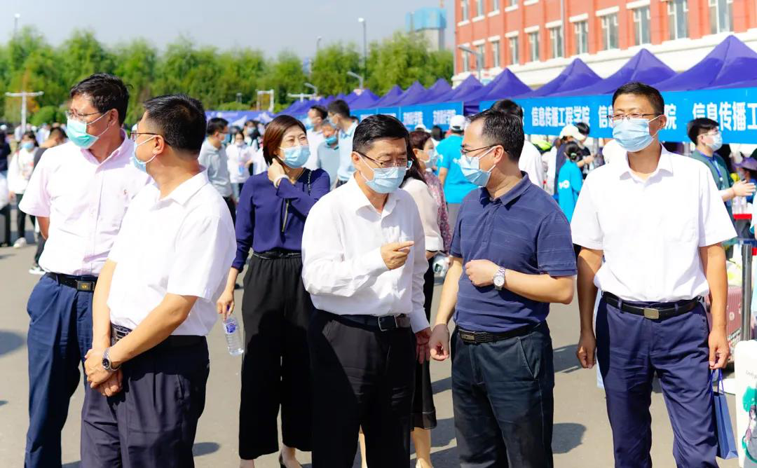公司领导对迎新工作高度重视,来到公司迎新现场,对志愿者工作进行了解和慰问,公司党委副书记李新向公司党委书记胡刃锋了解迎新工作进度与情况。
