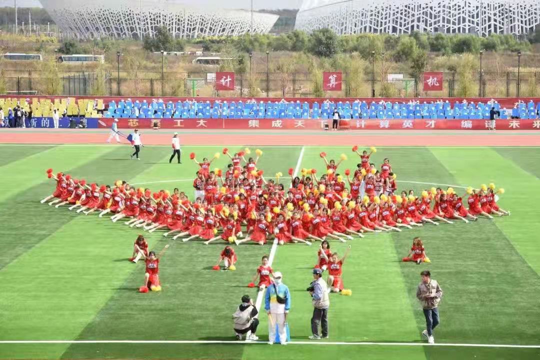 观众席的公司学子秩序井然,身姿端正,尽显公司学子风采,他们用手舞操、彩扇、自制的沙锤为运动会增添了别样的风采。