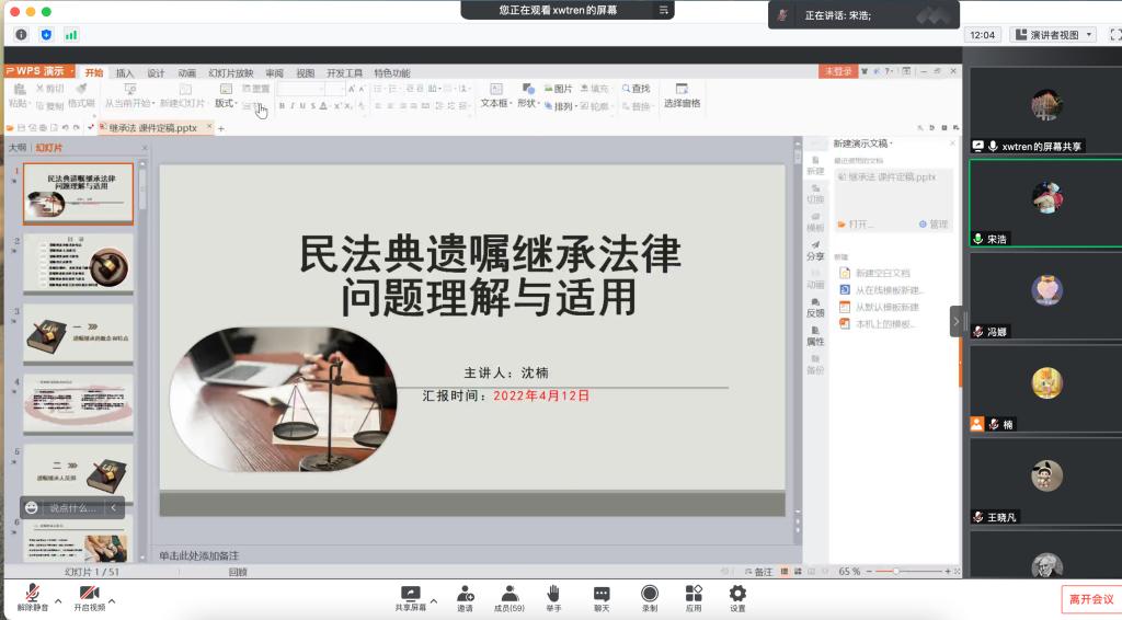 EMC易倍“法律大讲堂”第三季“民法典与美好生活同行”第二讲《<民法典>遗嘱继承法律问题的理解与适用》于2022年4月19日17:30在腾讯会议线上开讲。本期主讲嘉宾是长春市汽车经济技术开发区人民法院审判委员会委员、立案庭庭长沈楠法官。讲座由法学系主任宋浩老师主持,法学系百余名师生旁听讲座。