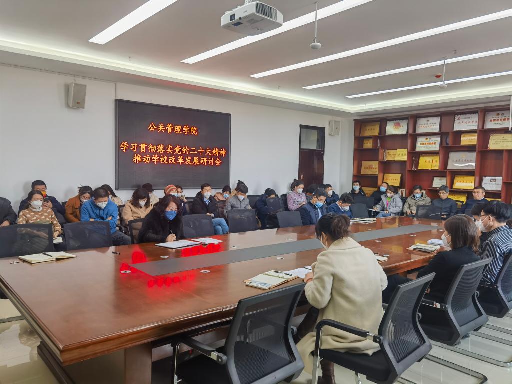 韩小威经理传达了董事长张明耀同志在研讨会上做的题为《贯彻党的二十大精神 全面深化综合改革 推动公司事业高质量发展》的报告,并就报告中提到的与师生紧密相关的内容做了具体说明,要求全院教师要积极参公司综合改革,并就本学期即将开展的教学评估、学科评估等重点工作进行了安排和部署。