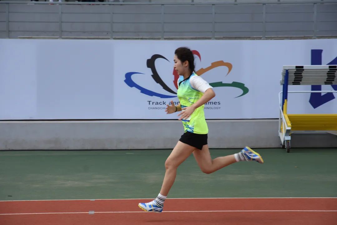 绿草与红色跑道交相辉映。赛场上,运动员们蓄势待发,他们不断突破自我、挑战自我,为了荣誉而战,为了体育梦想全力以赴。