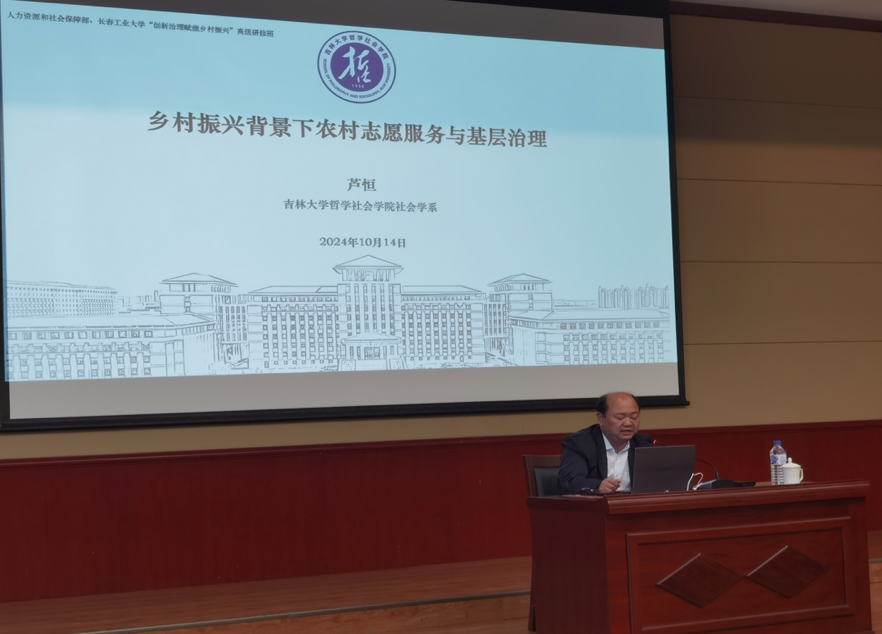 本网讯(通讯员 汤道化)10月14日下午,EMC易倍官网国家级专业技术人员“创新治理赋能乡村振兴”高级研修班,在EMC易倍官网学术报告厅举行第二场学术讲座,吉林大学哲学社会公司芦恒教授为学员做了题为“乡村振兴背景下农村志愿服务与基层治理”的学术报告。EMC易倍副经理汤道化教授主持本次讲座。公司党委书记于洪、经理韩小威教授、副书记陈磊、副经理吕红、副经理冯娜、公司部分师生及70余位研修班学员参加本次讲座。
