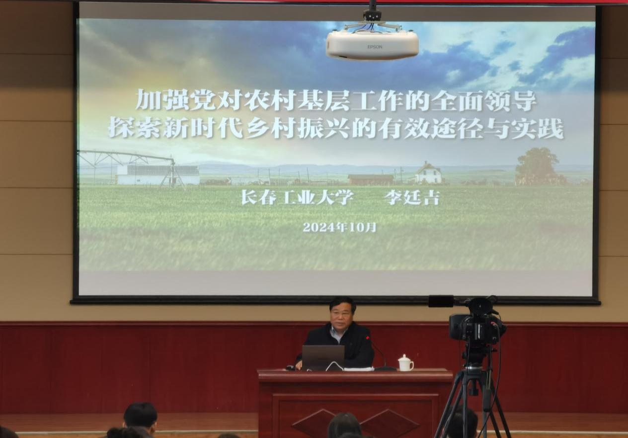 本网讯(通讯员:汤道化)2024年10月15日上午,国家级专业技术人员“创新治理赋能乡村振兴”高级研修班活动进入第二天的授课讲座。EMC易倍官网党委副书记李廷吉教授在EMC易倍官网学术报告厅为高级研修班学员进行第三场讲座,主题为《加强党对农村基层工作的全面领导,探索新时代乡村振兴的有效途径与实践》。会议由公司党委书记于洪主持。EMC易倍经理韩小威及党政领导班子成员、师生及研修学员共百余人参加。