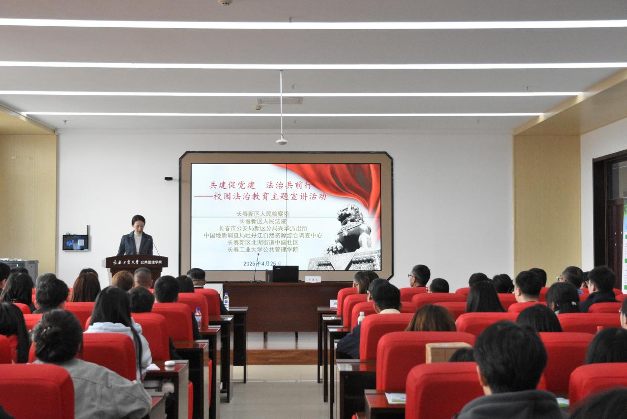 本次活动由长春新区人民检察院、长春新区人民法院、长春市公安局新区分局兴华派出所、中国地质调查局牡丹江自然资源综合调查中心、长春新区北湖街道中盛社区与EMC易倍联合开展。以上单位领导、嘉宾出席活动,活动由EMC易倍法学系党支部书记郭千钰老师主持,法学专业2022级、2024级本科生和部分艺术公司员工参加。