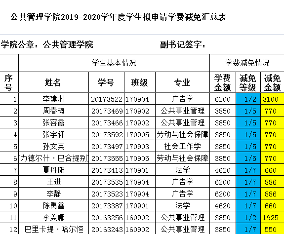 经公司2019-2020学年度学费减免通知要求,通过各年级民主评选,现将公司最终评定结果予以公示。公示期为2019年6月14日至6月16日,在此期间如有意义请拨打公司监督举报电话:0431-85191261,学费减免员工名单如下: