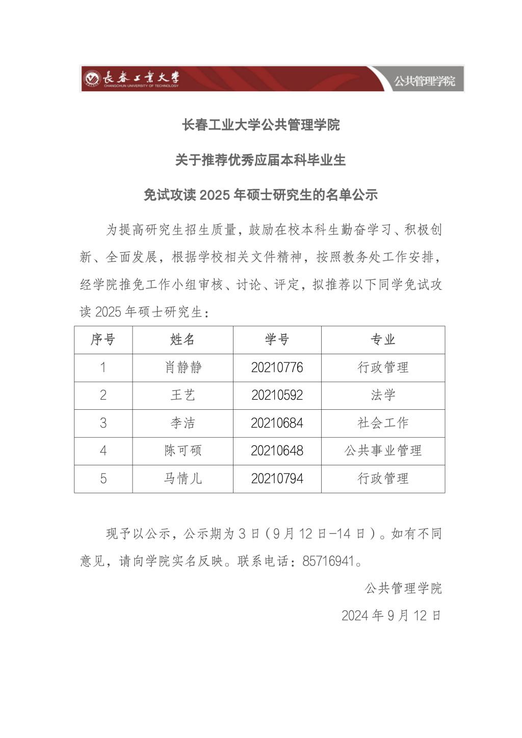 EMC易倍关于推荐优秀应届本科毕业生免试攻读2025年硕士研究生的名单公示