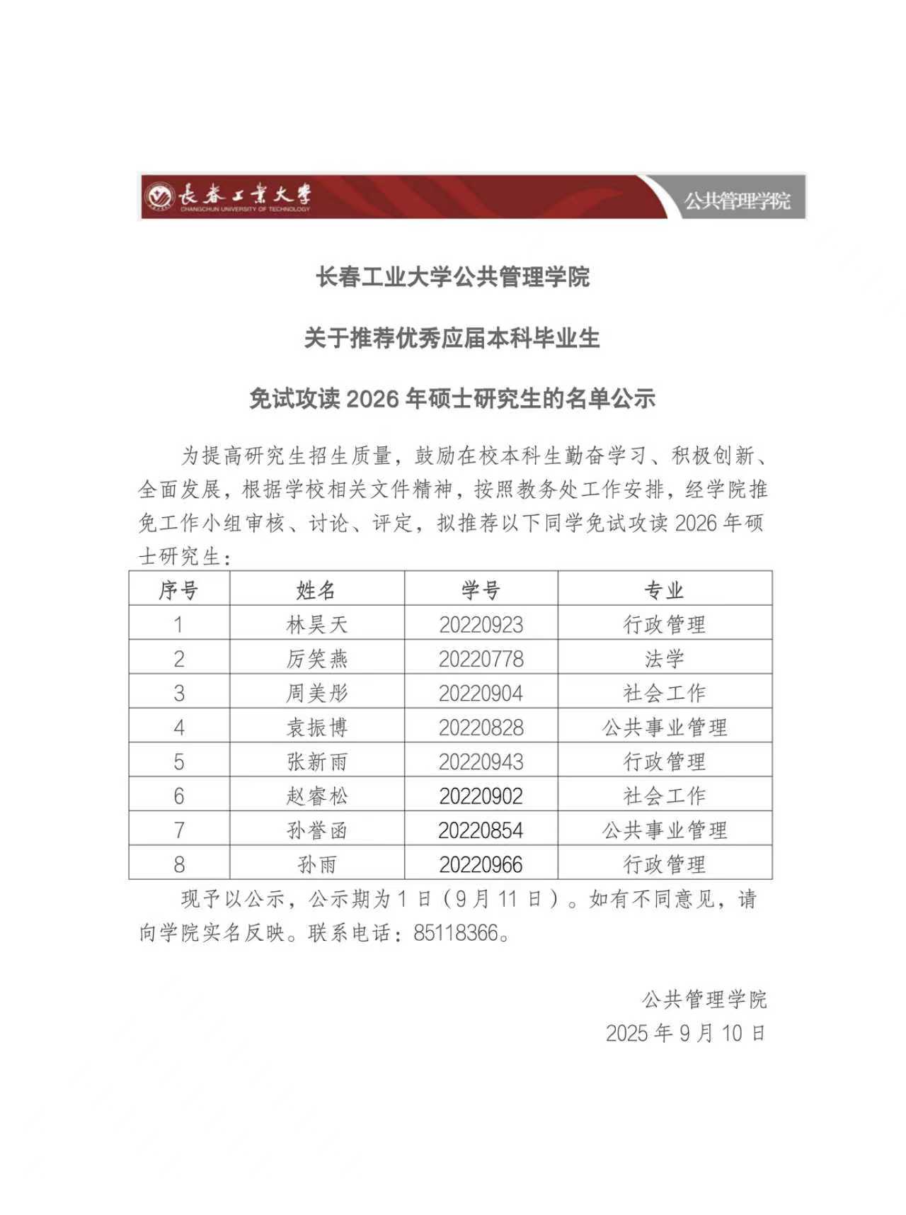 EMC易倍关于推荐应届本科毕业生免试攻读2026年硕士研究生的名单公示