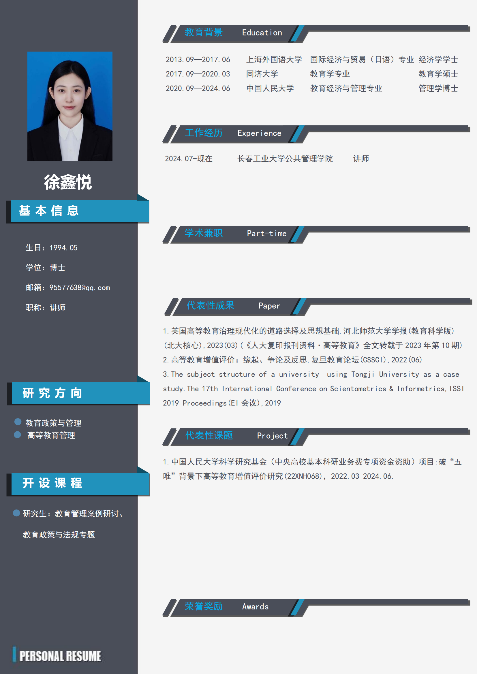 徐鑫悦讲师